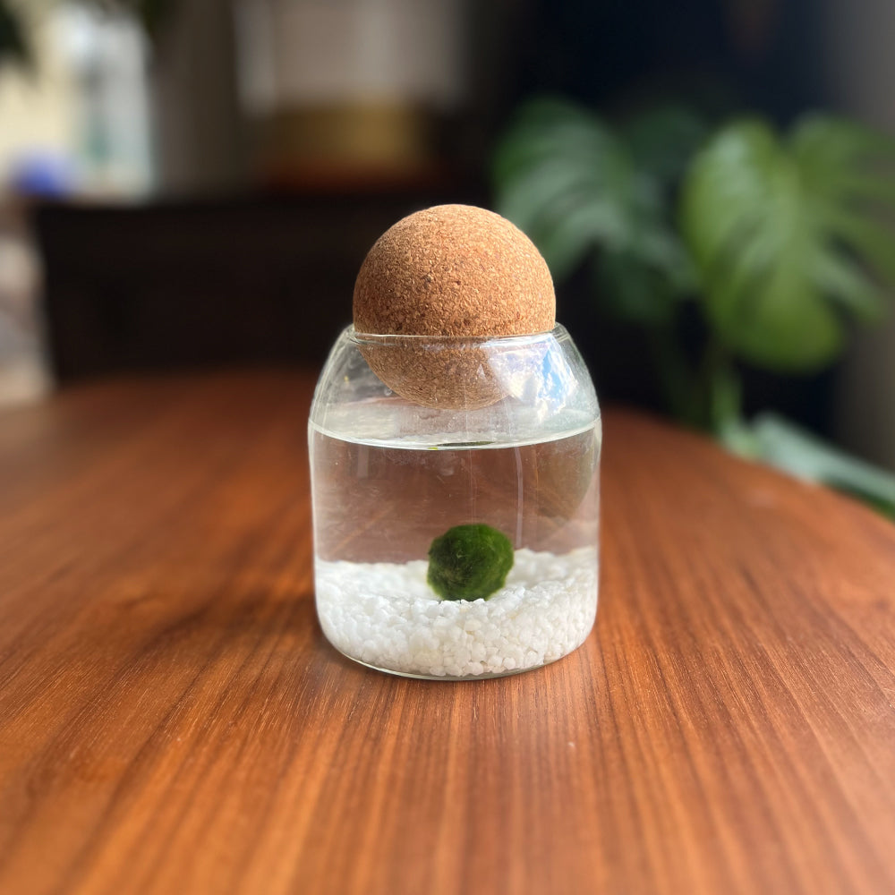 Puedes usar el frasco con o sin tapa, ambas opciones son adecuadas para el marimo.